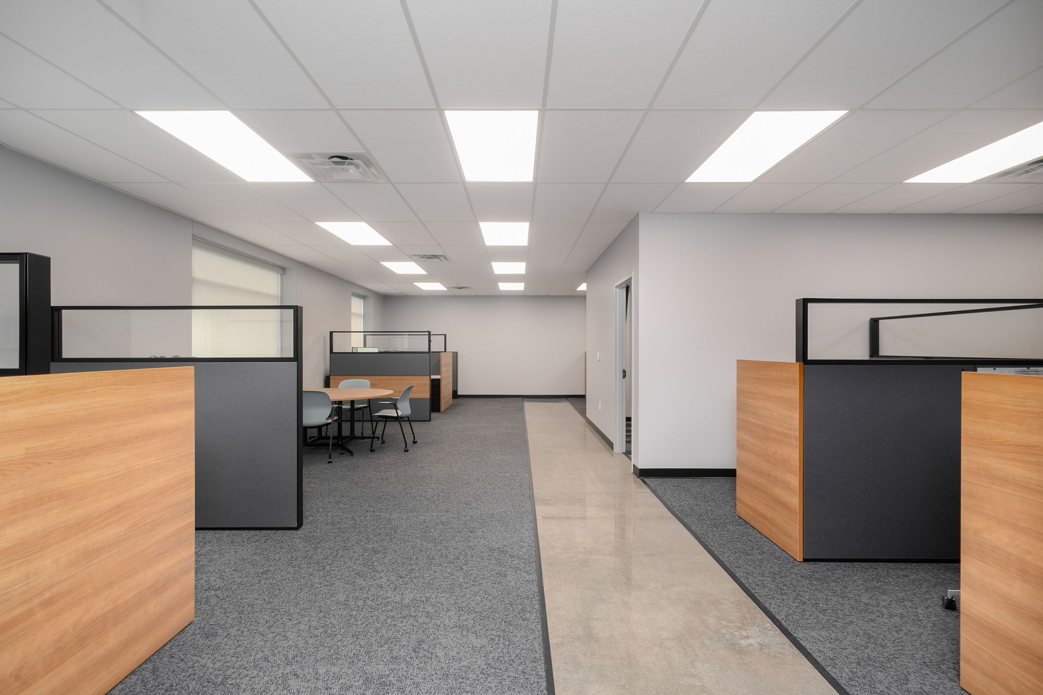 MC Freight, a growing St. Charles, MO-based cargo and freight company wanted their new space to be an attractive and enticing place for their employees to work. P•O•E worked with MC Freight to understand their workstyles and their goals for attracting new talent. Some of their work is very dynamic and requires a lot of collaboration while other teams require a more focused workspace. Additionally, the organization is actively growing and needs adequate space for new employees without feeling cramped. During their in-studio meeting, P•O•E’s designers presented the design in real-time, and after a tour of the studio and discussing everyone’s needs, were able to implement some very last-minute changes to the design. MC Freight is known for putting employee well-being first and it was important to them that every employee have a height-adjustable worksurface for multiple postures and movement throughout the day. P•O•E acted as the sole partner on this project, also providing paint and carpet throughout the entire workspace. MC Freight now has a fun and functional space to grow into the future.