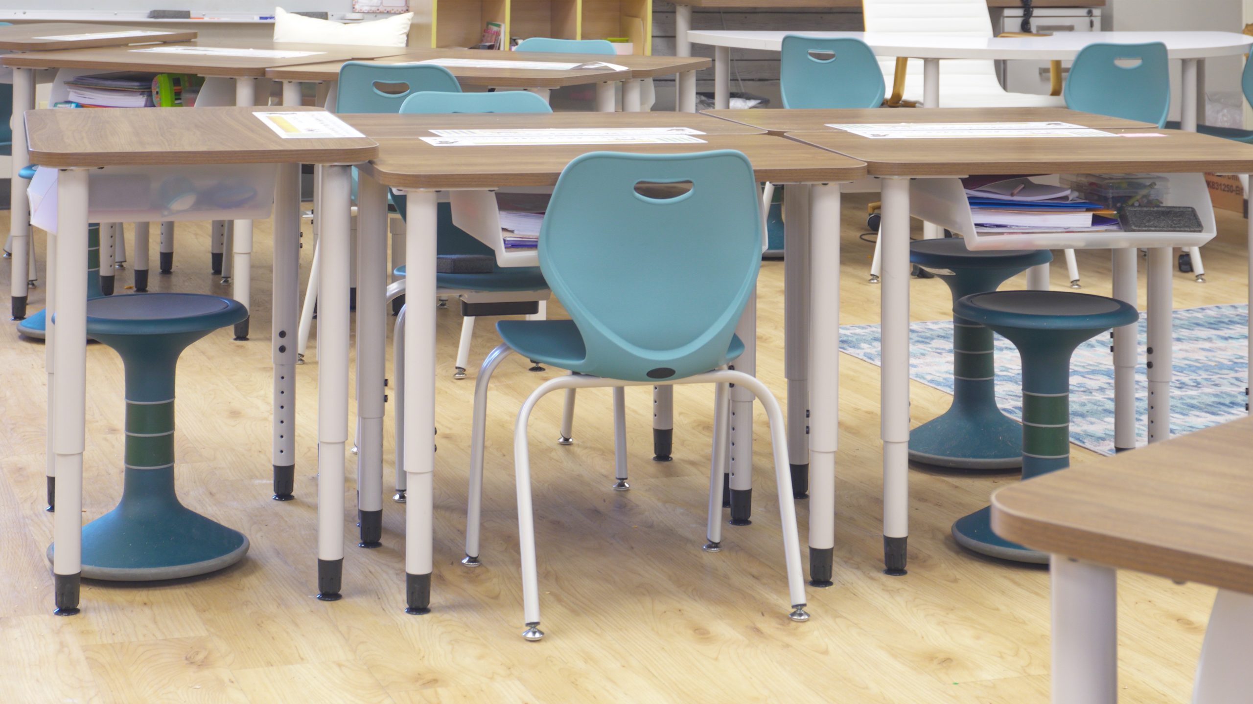 Product Used: Global Furniture Group Dess Lounge chairs, Princeton Tables, Height adjustable tables with Zira storage, Noetic Mesh back chairs, Sprintz flip seat nesting chairs, Flip top tables